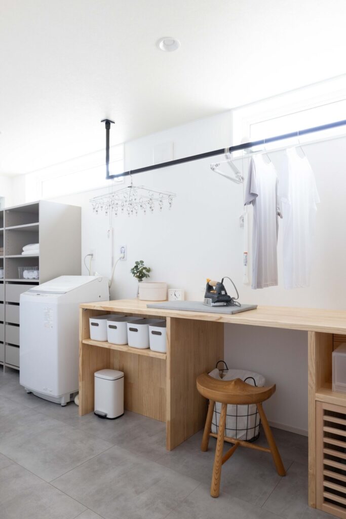 埋め込みの間接照明や、すっきりとした造作棚。余計なものを削ぎ落としたからこそ、家族の暮らしが主役になります。 - 実際の暮らしをイメージできる「リアルサイズ」