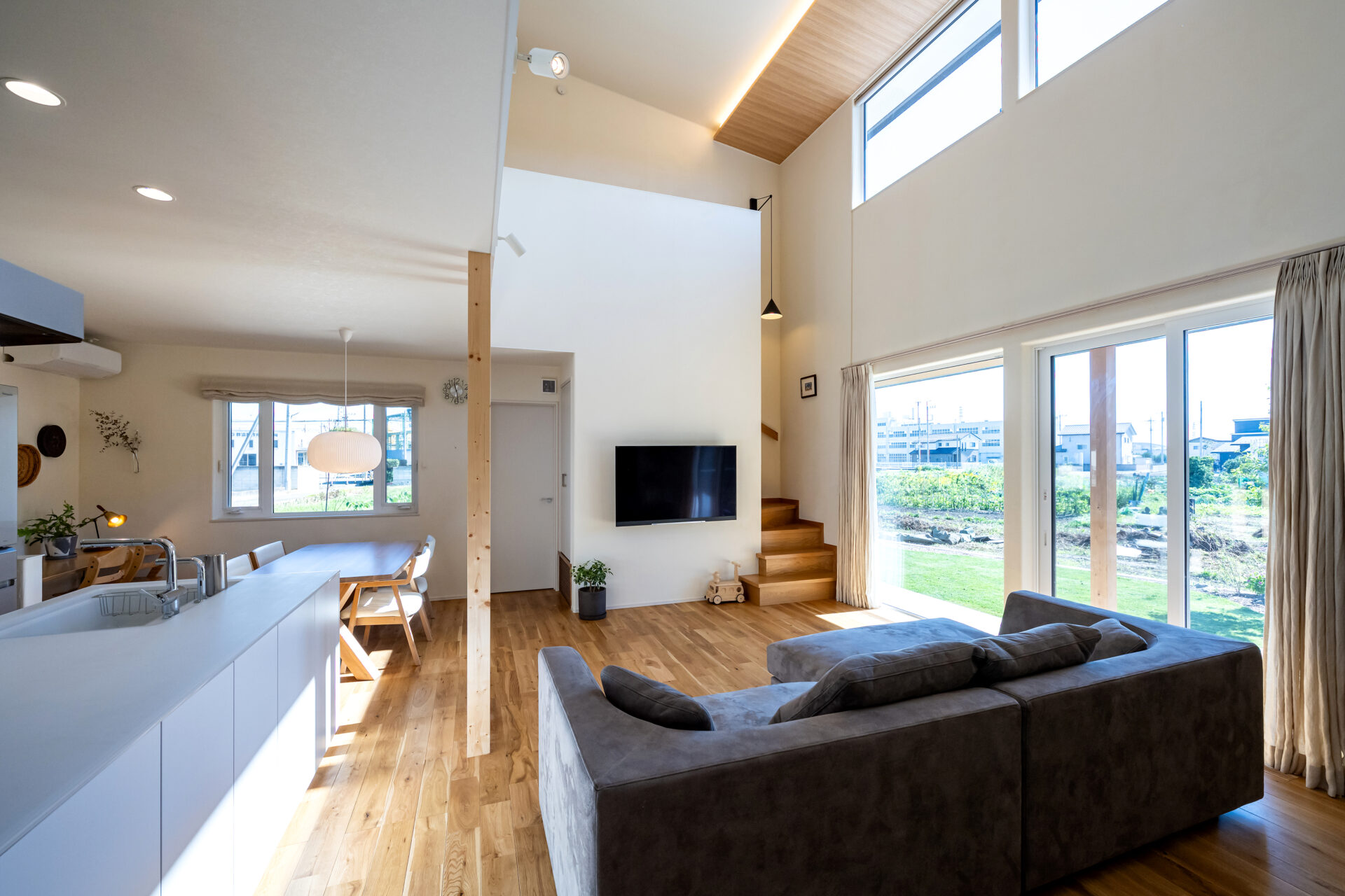 変形地に建つこのお家は間取りもとても考えられており、吹き抜けがとても気持ち良いお家です。